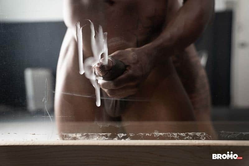 Chris fucks the bottom on the table, then Adrian sucks Chris’s dick and rides him before Chris bends him over and pounds him till he shoots his load all over the one-way mirror.