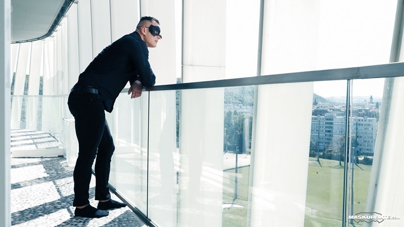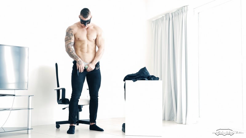 Masked Luke Ward jerks his huge boner to a massive cum shot jizz explosion